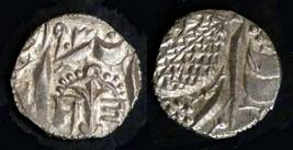 | Description / विवरण | Descrpn./Obv In the centre, a chhatra with Sa and Ta in Gurumukhi script on the left and right of its shaft; traces of the Persian legend seen on the obverse of the bigger Nanakshahi coins of Amritsar mint are also seen. Descrpn./Rev Big peepal leaf and traces of the Persian legend seen on the reverse of the bigger Nanakshahi coins of Amiritsar mint - Shri Amritsarjiv zarb [VS Year] Takht maimanat julus manus Akal Bakht. Especially traces of alif of Akal and te of Takht and maimanat are seen |