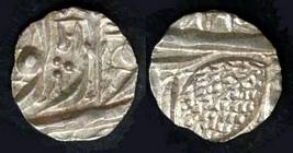 | Description / विवरण | Descrpn./Obv In the centre, a chhatra with Sa and Ta in Gurumukhi script on the left and right of its shaft; traces of the Persian legend seen on the obverse of the bigger Nanakshahi coins of Amritsar mint are also seen. Descrpn./Rev Big peepal leaf and traces of the Persian legend seen on the reverse of the bigger Nanakshahi coins of Amiritsar mint - Shri Amritsarjiv zarb [VS Year] Takht maimanat julus manus Akal Bakht. Especially traces of alif of Akal and te of Takht and maimanat are seen |