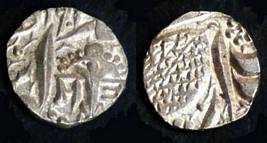 | Description / विवरण | Descrpn./Obv In the centre, a chhatra with Sa and Ta in Gurumukhi script on the left and right of its shaft; traces of the Persian legend seen on the obverse of the bigger Nanakshahi coins of Amritsar mint are also seen. Descrpn./Rev Big peepal leaf and traces of the Persian legend seen on the reverse of the bigger Nanakshahi coins of Amiritsar mint - Shri Amritsarjiv zarb [VS Year] Takht maimanat julus manus Akal Bakht. Especially traces of alif of Akal and te of Takht and maimanat are seen |