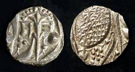 | Description / विवरण | Descrpn./Obv In the centre, a chhatra with Sa and Ta in Gurumukhi script on the left and right of its shaft; traces of the Persian legend seen on the obverse of the bigger Nanakshahi coins of Amritsar mint are also seen. Descrpn./Rev Big peepal leaf and traces of the Persian legend seen on the reverse of the bigger Nanakshahi coins of Amiritsar mint - Shri Amritsarjiv zarb [VS Year] Takht maimanat julus manus Akal Bakht. Especially traces of alif of Akal and te of Takht and maimanat are seen |