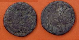 | Description / विवरण | Descrpn./Obv Recumbent bull facing left, wearing jhula (saddle cloth), with trisula (trident) symbol on rump. Above, legend in Sarada script Sri Samantadeva . Descrpn./Rev Rider with lance on caparisoned horse facing right. On left, Sarada letter bhi and on right, Sarada letter ta |