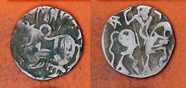 | Description / विवरण | Descrpn./Obv Recumbent bull facing left, wearing jhula (saddle cloth), with trisula (trident) symbol on rump. Above, legend in Sarada script Sri Samantadeva . Descrpn./Rev Rider with lance on caparisoned horse facing right. On left, Sarada letter bhi and on right, Sarada letter ta |