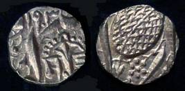 | Description / विवरण | Descrpn./Obv In the centre, a chhatra with Sa and Ta in Gurumukhi script on the left and right of its shaft; traces of the Persian legend seen on the obverse of the bigger Nanakshahi coins of Amritsar mint are also seen. Descrpn./Rev Big peepal leaf and traces of the Persian legend seen on the reverse of the bigger Nanakshahi coins of Amiritsar mint - Shri Amritsarjiv zarb [VS Year] Takht maimanat julus manus Akal Bakht. Especially traces of alif of Akal and te of Takht and maimanat are seen |