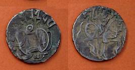 | Description / विवरण | Descrpn./Obv Recumbent bull facing left, wearing jhula (saddle cloth), with trisula (trident) symbol on rump. Above, legend in Sarada script Sri Samantadeva . Descrpn./Rev Rider with lance on caparisoned horse facing right. On left, Sarada letter bhi and on right, Sarada letter ta |