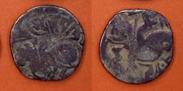 | Description / विवरण | Descrpn./Obv Recumbent bull facing left, wearing jhula (saddle cloth), with trisula (trident) symbol on rump. Above, legend in Sarada script Sri Samantadeva . Descrpn./Rev Rider with lance on caparisoned horse facing right. On left, Sarada letter bhi and on right, Sarada letter ta |