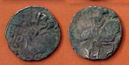 | Description / विवरण | Descrpn./Obv Recumbent bull facing left, wearing jhula (saddle cloth), with trisula (trident) symbol on rump. Above, legend in Sarada script Sri Samantadeva . Descrpn./Rev Rider with lance on caparisoned horse facing right. On left, Sarada letter bhi and on right, Sarada letter ta |