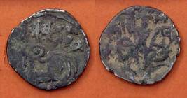 | Description / विवरण | Descrpn./Obv Recumbent bull facing left, wearing jhula (saddle cloth), with trisula (trident) symbol on rump. Above, legend in Sarada script Sri Samantadeva . Descrpn./Rev Rider with lance on caparisoned horse facing right. On left, Sarada letter bhi and on right, Sarada letter ta |