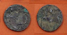 | Description / विवरण | Descrpn./Obv Recumbent bull facing left, wearing jhula (saddle cloth), with trisula (trident) symbol on rump. Above, legend in Sarada script Sri Samantadeva . Descrpn./Rev Rider with lance on caparisoned horse facing right. On left, Sarada letter bhi and on right, Sarada letter ta |