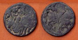 | Description / विवरण | Descrpn./Obv Recumbent bull facing left, wearing jhula (saddle cloth), with trisula (trident) symbol on rump. Above, legend in Sarada script Sri Samantadeva . Descrpn./Rev Rider with lance on caparisoned horse facing right. On left, Sarada letter bhi and on right, Sarada letter ta |