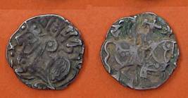 | Description / विवरण | Descrpn./Obv Recumbent bull facing left, wearing jhula (saddle cloth), with trisula (trident) symbol on rump. Above, legend in Sarada script Sri Samantadeva . Descrpn./Rev Rider with lance on caparisoned horse facing right. On left, Sarada letter bhi and on right, Sarada letter ta |