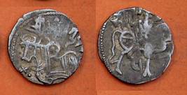 | Description / विवरण | Descrpn./Obv Recumbent bull facing left, wearing jhula (saddle cloth), with trisula (trident) symbol on rump. Above, legend in Sarada script Sri Samantadeva . Descrpn./Rev Rider with lance on caparisoned horse facing right. On left, Sarada letter bhi and on right, Sarada letter ta |