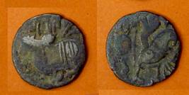 | Description / विवरण | Descrpn./Obv Recumbent bull facing left, wearing jhula (saddle cloth), with trisula (trident) symbol on rump. Above, legend in Sarada script Sri Samantadeva . Descrpn./Rev Rider with lance on caparisoned horse facing right. On left, Sarada letter bhi and on right, Sarada letter ta |