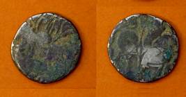 | Description / विवरण | Descrpn./Obv Recumbent bull facing left, wearing jhula (saddle cloth), with trisula (trident) symbol on rump. Above, legend in Sarada script Sri Samantadeva . Descrpn./Rev Rider with lance on caparisoned horse facing right. On left, Sarada letter bhi and on right, Sarada letter ta |