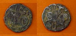 | Description / विवरण | Descrpn./Obv Recumbent bull facing left, wearing jhula (saddle cloth), with trisula (trident) symbol on rump. Above, legend in Sarada script Sri Samantadeva . Descrpn./Rev Rider with lance on caparisoned horse facing right. On left, Sarada letter bhi and on right, Sarada letter ta |