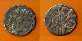 | Description / विवरण | Descrpn./Obv Recumbent bull facing left, wearing jhula (saddle cloth), with trisula (trident) symbol on rump. Above, legend in Sarada script Sri Samantadeva . Descrpn./Rev Rider with lance on caparisoned horse facing right. On left, Sarada letter bhi and on right, Sarada letter ta |