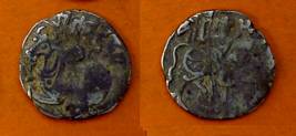 | Description / विवरण | Descrpn./Obv Recumbent bull facing left, wearing jhula (saddle cloth), with trisula (trident) symbol on rump. Above, legend in Sarada script Sri Samantadeva . Descrpn./Rev Rider with lance on caparisoned horse facing right. On left, Sarada letter bhi and on right, Sarada letter ta |
