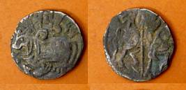 | Description / विवरण | Descrpn./Obv Recumbent bull facing left, wearing jhula (saddle cloth), with trisula (trident) symbol on rump. Above, legend in Sarada script Sri Samantadeva . Descrpn./Rev Rider with lance on caparisoned horse facing right. On left, Sarada letter bhi and on right, Sarada letter ta |
