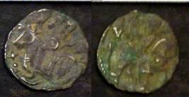 | Description / विवरण | Descrpn./Obv Recumbent bull facing left, wearing jhula (saddle cloth), with trisula (trident) symbol on rump. Above, legend in Sarada script Sri Samantadeva . Descrpn./Rev Rider with lance on caparisoned horse facing right. On left, Sarada letter bhi and on right, Sarada letter ta |