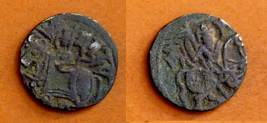 | Description / विवरण | Descrpn./Obv Recumbent bull facing left, wearing jhula (saddle cloth), with trisula (trident) symbol on rump. Above, legend in Sarada script Sri Samantadeva . Descrpn./Rev Rider with lance on caparisoned horse facing right. On left, Sarada letter bhi and on right, Sarada letter ta |