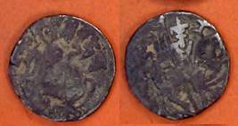 | Description / विवरण | Descrpn./Obv Recumbent bull facing left, wearing jhula (saddle cloth), with trisula (trident) symbol on rump. Above, legend in Sarada script Sri Samantadeva . Descrpn./Rev Rider with lance on caparisoned horse facing right. On left, Sarada letter bhi and on right, Sarada letter ta |