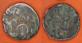 | Description / विवरण | Descrpn./Obv Recumbent bull facing left, wearing jhula (saddle cloth), with trisula (trident) symbol on rump. Above, legend in Sarada script Sri Samantadeva . Descrpn./Rev Rider with lance on caparisoned horse facing right. On left, Sarada letter bhi and on right, Sarada letter ta |