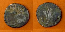 | Description / विवरण | Descrpn./Obv Recumbent bull facing left, wearing jhula (saddle cloth), with trisula (trident) symbol on rump. Above, legend in Sarada script Sri Samantadeva . Descrpn./Rev Rider with lance on caparisoned horse facing right. On left, Sarada letter bhi and on right, Sarada letter ta |
