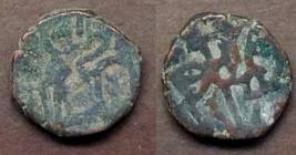 | Description / विवरण | Descrpn./Obv Recumbent bull facing left, wearing jhula (saddle cloth). Above, legend in Sarada script Sri Samantadeva (in cursive letters, mostly truncated and seen partially or off the flan). Descrpn./Rev Rider with lance on caparisoned horse facing right. |