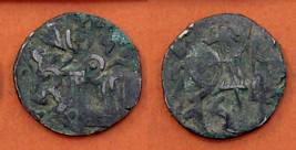 | Description / विवरण | Descrpn./Obv Recumbent bull facing left, wearing jhula (saddle cloth), with trisula (trident) symbol on rump. Above, legend in Sarada script Sri Samantadeva . Descrpn./Rev Rider with lance on caparisoned horse facing right. On left, Sarada letter bhi and on right, Sarada letter ta |