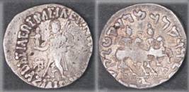 | Description / विवरण | Descrpn./Obv Zeus standing half left, holding winged Nike and long sceptre; Greek legend, Basileos Basileon Megalou / Azilisou. Descrpn./Rev Dioscuri, holding long spears and palms, mounted on horse galloping right, Kharoshthi legend, Maharajasa Rajadirajasa Mahatasa Ayilishasa |