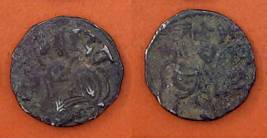 | Description / विवरण | Descrpn./Obv Recumbent bull facing left, wearing jhula (saddle cloth), with trisula (trident) symbol on rump. Above, legend in Sarada script Sri Samantadeva . Descrpn./Rev Rider with lance on caparisoned horse facing right. On left, Sarada letter bhi and on right, Sarada letter ta |
