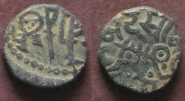 | Description / विवरण | Obverse - In dotted circle, recumbent bull to left; around Nagari inscription Sri Mahamada Sama. Reverse - Stylised Horseman to right; Nagari inscription Sri/Hamirah. |