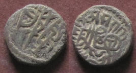 | Description / विवरण | Obverse - Recumbent bull; around in Devnagari suritana si samasadina. Reverse - Stylised Horseman, around In Devnagari Sri Hamirah. |