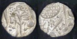 | Description / विवरण | Descrpn./Obv In the centre, a chhatra with Sa and Ta in Gurumukhi script on the left and right of its shaft; traces of the Persian legend seen on the obverse of the bigger Nanakshahi coins of Amritsar mint are also seen. Descrpn./Rev Big peepal leaf and traces of the Persian legend seen on the reverse of the bigger Nanakshahi coins of Amiritsar mint - Shri Amritsarjiv zarb [VS Year] Takht maimanat julus manus Akal Bakht. Especially traces of alif of Akal and te of Takht and maimanat are seen |