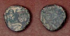 | Description / विवरण | Descrpn./Obv Recumbent bull facing left, wearing jhula (saddle cloth). Above, legend in Sarada script Sri Samantadeva (in cursive letters, mostly truncated and seen partially or off the flan). Descrpn./Rev Rider with lance on caparisoned horse facing right. |