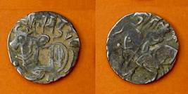 | Description / विवरण | Descrpn./Obv Recumbent bull facing left, wearing jhula (saddle cloth), with trisula (trident) symbol on rump. Above, legend in Sarada script Sri Samantadeva . Descrpn./Rev Rider with lance on caparisoned horse facing right. On left, Sarada letter bhi and on right, Sarada letter ta |