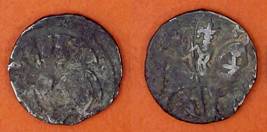 | Description / विवरण | Descrpn./Obv Recumbent bull facing left, wearing jhula (saddle cloth), with trisula (trident) symbol on rump. Above, legend in Sarada script Sri Samantadeva . Descrpn./Rev Rider with lance on caparisoned horse facing right. On left, Sarada letter bhi and on right, Sarada letter ta |