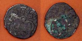 | Description / विवरण | Descrpn./Obv Recumbent bull facing left, wearing jhula (saddle cloth), with trisula (trident) symbol on rump. Above, legend in Sarada script Sri Samantadeva . Descrpn./Rev Rider with lance on caparisoned horse facing right. On left, Sarada letter bhi and on right, Sarada letter ta |