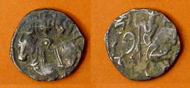 | Description / विवरण | Descrpn./Obv Recumbent bull facing left, wearing jhula (saddle cloth), with trisula (trident) symbol on rump. Above, legend in Sarada script Sri Samantadeva . Descrpn./Rev Rider with lance on caparisoned horse facing right. On left, Sarada letter bhi and on right, Sarada letter ta |