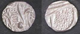 | Description / विवरण | Descrpn./Obv In the centre, a chhatra with Sa and Ta in Gurumukhi script on the left and right of its shaft; traces of the Persian legend seen on the obverse of the bigger Nanakshahi coins of Amritsar mint are also seen. Descrpn./Rev Big peepal leaf and traces of the Persian legend seen on the reverse of the bigger Nanakshahi coins of Amiritsar mint - Shri Amritsarjiv zarb [VS Year] Takht maimanat julus manus Akal Bakht. Especially traces of alif of Akal and te of Takht and maimanat are seen |