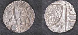 | Description / विवरण | Descrpn./Obv In the centre, a chhatra with Sa and Ta in Gurumukhi script on the left and right of its shaft; traces of the Persian legend seen on the obverse of the bigger Nanakshahi coins of Amritsar mint are also seen. Descrpn./Rev Big peepal leaf and traces of the Persian legend seen on the reverse of the bigger Nanakshahi coins of Amiritsar mint - Shri Amritsarjiv zarb [VS Year] Takht maimanat julus manus Akal Bakht. Especially traces of alif of Akal and te of Takht and maimanat are seen |