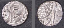 | Description / विवरण | Descrpn./Obv In the centre, a chhatra with Sa and Ta in Gurumukhi script on the left and right of its shaft; traces of the Persian legend seen on the obverse of the bigger Nanakshahi coins of Amritsar mint are also seen. Descrpn./Rev Big peepal leaf and traces of the Persian legend seen on the reverse of the bigger Nanakshahi coins of Amiritsar mint - Shri Amritsarjiv zarb [VS Year] Takht maimanat julus manus Akal Bakht. Especially traces of alif of Akal and te of Takht and maimanat are seen |