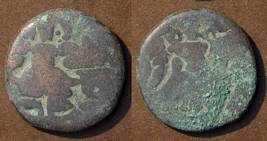 | Description / विवरण | Descrpn./Obv Stylised seated Goddess facing (Details and legend rubbed off/ worn out). Descrpn./Rev Stylised standing king design (Details and legend rubbed off/ worn out) |