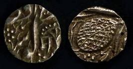 | Description / विवरण | Descrpn./Obv In the centre, a chhatra with Sa and Ta in Gurumukhi script on the left and right of its shaft; traces of the Persian legend seen on the obverse of the bigger Nanakshahi coins of Amritsar mint are also seen. Descrpn./Rev Big peepal leaf and traces of the Persian legend seen on the reverse of the bigger Nanakshahi coins of Amiritsar mint - Shri Amritsarjiv zarb [VS Year] Takht maimanat julus manus Akal Bakht. Especially traces of alif of Akal and te of Takht and maimanat are seen |