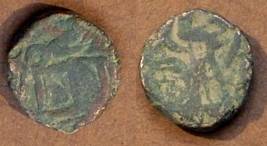 | Description / विवरण | Descrpn./Obv Recumbent bull facing left, wearing jhula (saddle cloth). Above, legend in Sarada script Sri Samantadeva (in cursive letters, mostly truncated and seen partially or off the flan). Descrpn./Rev Rider with lance on caparisoned horse facing right. |