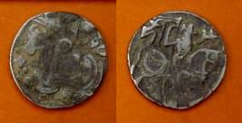 | Description / विवरण | Descrpn./Obv Recumbent bull facing left, wearing jhula (saddle cloth), with trisula (trident) symbol on rump. Above, legend in Sarada script Sri Samantadeva . Descrpn./Rev Rider with lance on caparisoned horse facing right. On left, Sarada letter bhi and on right, Sarada letter ta |