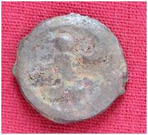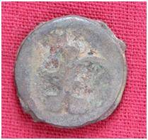 | Description / विवरण | The Shape of the Coin is Circular. Obverse A Standing figure of Kushana type king, with extended right hand and outstretched left hand, wears boots and tunic. Reverse Probably a standing figure of MAO or Moon-God with extended right hand and left hand is not visible, the crescent above the left shoulder. |