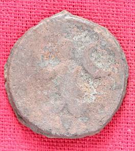 | Description / विवरण | The shape of the Coin is circular. Obverse -Probably, a standing figure of MAO or Moon-God with right arm curved upwards and the crescent above the left shoulder. The left arm is not visible. Reverse -Three hills or cone like objects placed in a straight Line and below then some legends inscribed. |