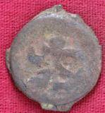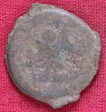 | Description / विवरण | The shape of the Coin is circular. Obverse -A Kushana type king standing with his right arm curved upwards and left arm curved downwards. Reverse -Probably, a standing figure of MAO or Moon-God with right arm curved upwards and the crescent above the left shoulder. The left arm is not visible. |