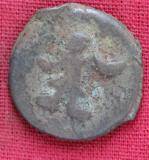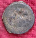 | Description / विवरण | The shape of the Coin is circular. Obverse -A Kushana type king standing with his right arm curved upwards and left arm curved downwards. Reverse -Probably, a standing figure of MAO or Moon-God with right arm curved upwards and the crescent above the left shoulder. The left arm is not visible |