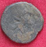 | Description / विवरण | The shape of the Coin is circular. Obverse -A Kushana type king standing with his right arm extended and left arm curved downwards. Reverse -Probably, a standing figure of MAO or Moon-God with right arm curved upwards and the crescent above the left shoulder. The left arm is not visible. |